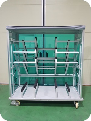쇼바식 선반과 EVA Guide, 전면은 단프라커버(3면 자석 적용), 좌,우측면과 후면은 렉산으로 마감하였으며
