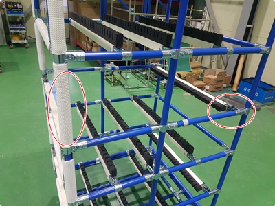 하단과 후면 모두 EVA Guide를 적용하였으며, 특히 후면 Guide는 가변 장치를 적용해 제품의 공용적재를 가능하게 설계, 제작 되었으며, 제품 진입부에는 제품 보호제를 적용하였습니다.