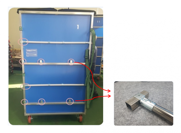 (참고로 원형파이프로만 제작시 납품용 대차는 지게차의 상하차로 인해 대부분의 업체에서 철베이스를 추가로 제작합니다.)